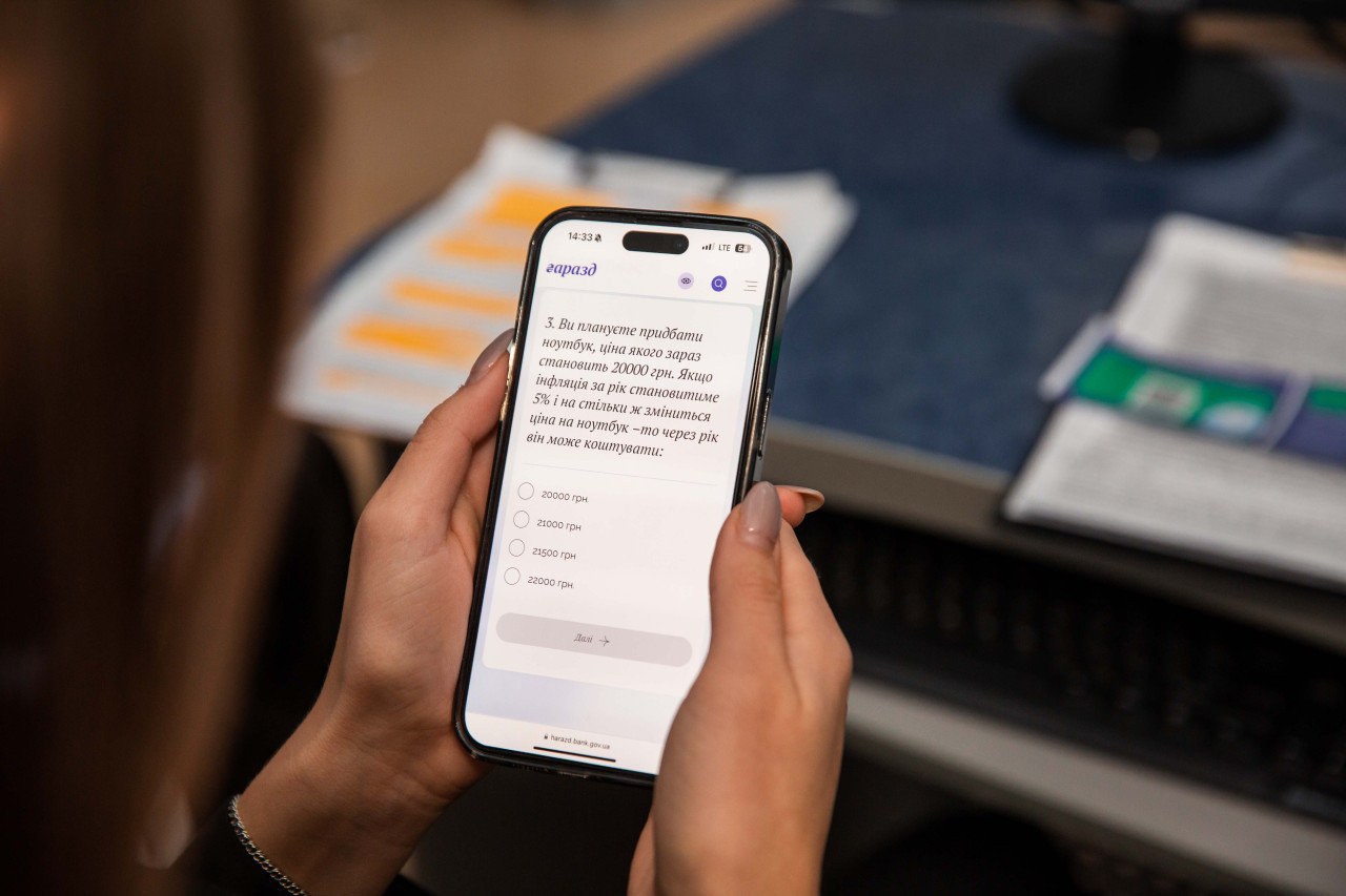 Вирішуючи ситуаційні завдання, учасники тестування мали змогу перевірити свій рівень фінансової грамотності як споживачів фінансових послуг, оцінити знання у сфері особистих фінансів та усвідомити наскільки вони готові до щоденних фінансових викликів. Адже кожне питання тесту – це симулятор, який допомагає приймати правильні фінансові рішення у повсякденному житті. За результатами тестування кожен учасник отримав персональні рекомендації щодо поліпшення знань та практичних навичок від фінансової консультантки сайту «Гаразд» – Горпинки.